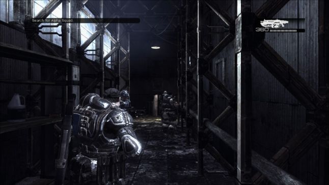 - Atmosphereand Context- There'due south a gradual buildup of tension earlier the starting time enemy threat appears. The tremor in the corridor, the hushful squad chatter once Delta Squad are out in the open, the moment of placidity and stillness as you take in the devastation of the metropolis around you and the stalking movement of the Reavers on the periphery. This excellently creates that calm before the tempest feeling, whereby although in that location is no bodily danger to the role player there is a perceived sense of looming threat that adds greater emotional weight to the combat. Likewise the death of Ruby, is also tied in at an appropiate time, with the thespian as Marcus Fenix being able to unleash their ache through the utilize of the Troika.