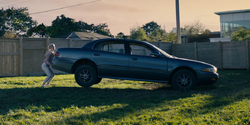 Annie lifting the back of a car